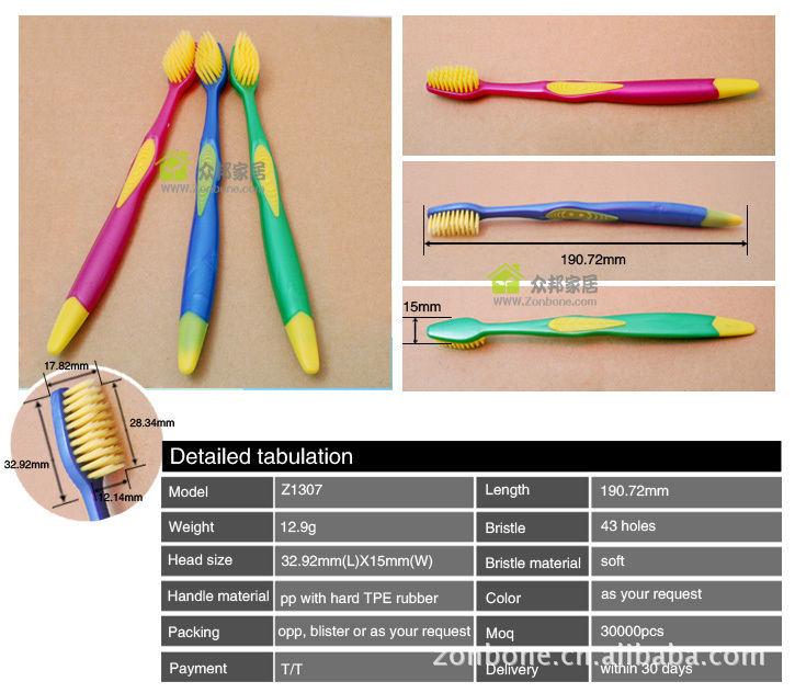 Z1307 众邦家居承接OEM贴牌加工 洁白亮齿型牙刷