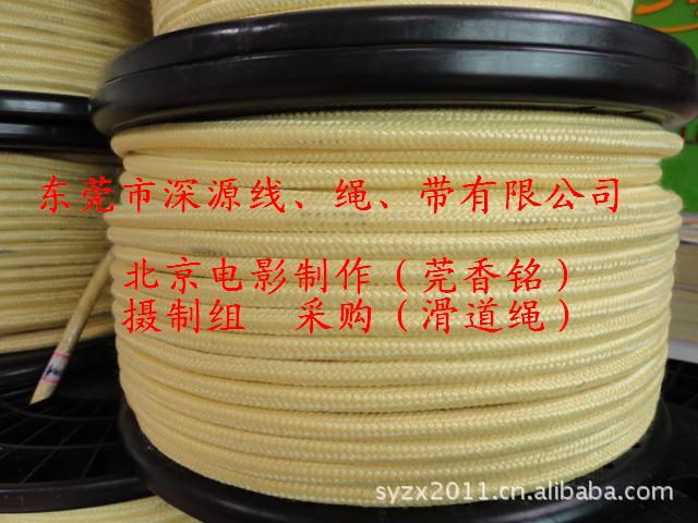 东莞市深源线业有限公司生产各类型凯芙拉(kevlar)芳纶编织绳、产品广泛用于:耐高温钢化炉锟道绳、户外运动(风筝线、滑翔伞、攀岩)消防,电力空中作业(安全带、绳)起重,运输(捆绑带、绳)(分别有:空心绳与有心绳)凯芙拉纤维扭绳、是以美国杜邦公司生产的kevlar纤维编制而成。kevlar有极高的强度,大于28克/旦,是优质钢材的5-6倍,模量是钢材或玻璃纤维的2-3倍,韧性是钢材的2倍,而重量仅为钢材的1/5。凯夫拉的连续使用温度范围极宽,在﹣196。C至204℃范围内可长期正常运行。在150℃下的收缩率为0,在560℃的高温下不分解不熔化,且具有良好的绝缘性和抗腐蚀性,生命周期很长。钢化炉锟道绳常用规格:扁形12X4mm、12X3.5mm 12X5.5mm 13X3.5mm 13X3mm 10X4mm 10X3mm 9X4mm 9X3mm 8X3mm