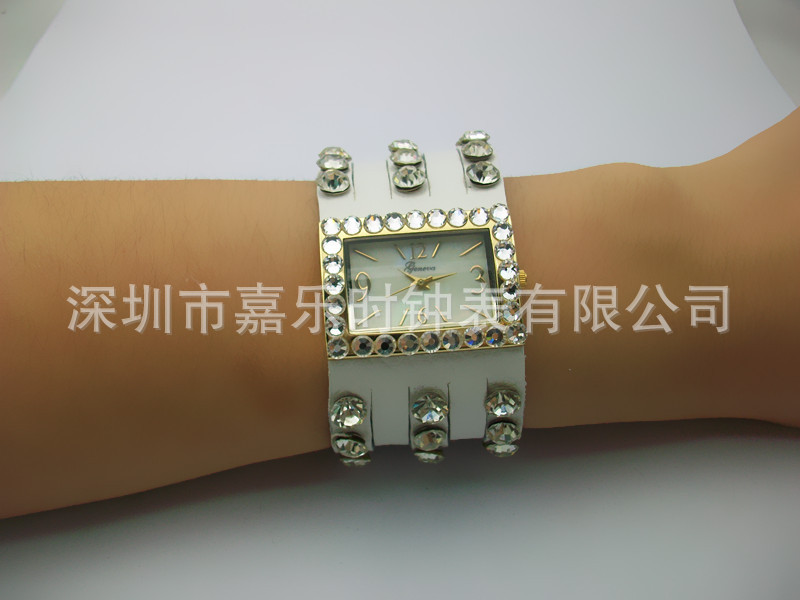新款荔枝纹真皮带钻女士石英手表 厂家供应精美礼品手表 欧美热销