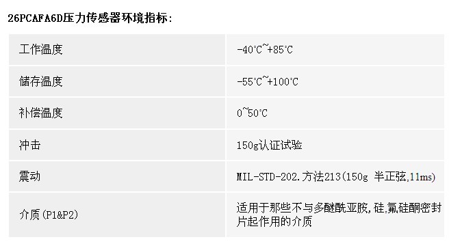 26PCAFA6D压力传感器是最低价格的带温度补偿和校正的小型封装压力传感器,26PCAFA6D压力传感器可以测量差压,量程:1psi。