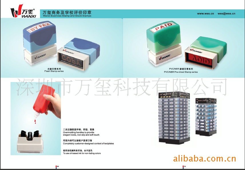 深圳市万玺科技有限公司是中国印章行业协会理事单位,是生产印章材料、印章设备、玩具印章、文具、文化用品的专业企业。 公司注册资本300万元人民币,生产加工场地3000多平方米,从业人员100余人。公司总经理陈凯先生是新型自动翻转印章、复合橡 胶印章(即光敏印章)的专利设计人,是具有方向性指痕柄系列印章、仿钻石柄型系列印章、台式负压制版机的专利权人。公司是 国外多家同行企业的中国代理。公司自产产品WES光敏印章、热压用复合橡胶、激光雕刻用橡胶板、可融性字模版等是本公司的“拳头”产品,在国内同类产品中始终处于领先地位。公司以良好的信誉和热诚的售后服务赢得了众多客户,目前,已与国内外2000多家同行企业建立了长期的合作关系... ... |