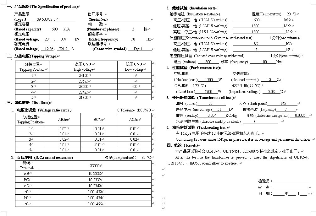 变压器技术参数与接法变压型号知性能,技术参数作鉴证,电压电流空载流,容量KVA为额定。 阻抗电压功率损,空载损耗是P0,接线组别12种,Y,yn0、Y,d11、YN,d11型。