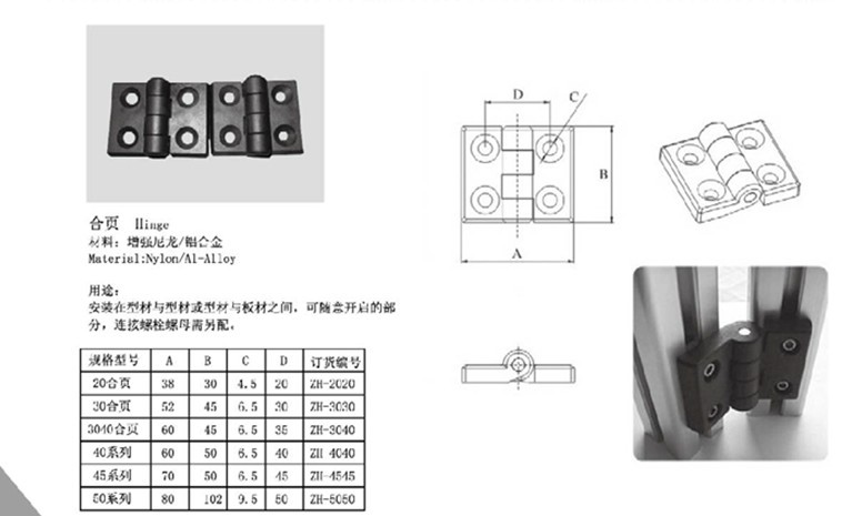 安装在型材与型材或型材与板材之间,可随意开启的部分,连接螺栓螺母需另配