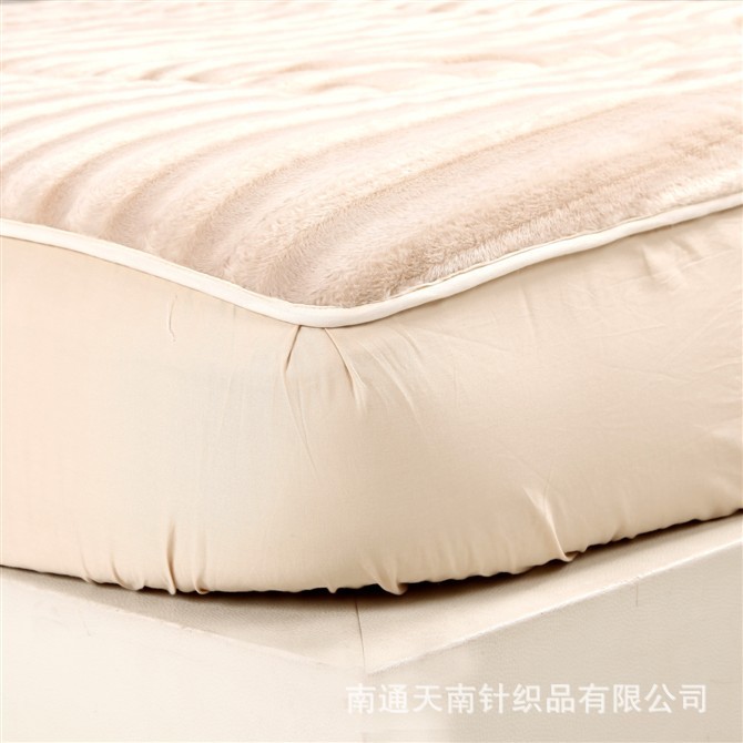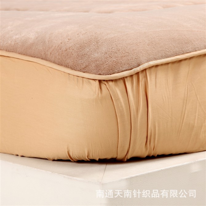 ♣【产品特点】: 1.本款产品做工高档,花纹时尚富贵,巧妙地将毛毯的柔软和床笠的保护自然地融合,创新性地成就了这款人见人爱的魅力床笠。中空纤维填充,有天然的防螨、防霉、制菌效果,日本先进设计技术,将身体的重力做平均的分摊,细致的撑起身体每一份肌肤,有效排除睡眠时身体散发的湿热空气,保持清爽. 2.中间的一层固体棉很好的起到支撑作用,睡起来即不会太软也不会太硬,垫子也不容易变形,可以直接放地板上使用,感觉也会很柔软. 3.产品三大亮点: a.床笠包在席梦思床垫上,可以起到清洁、防滑、保护床垫的作用实为健康家居首选。 b.它手感舒适,颜色淡雅,直接贴身使用,清洗也非常方便,直接放在地上,用稍许洗洁净精轻轻揉搓,再用清水冲净即可. c.也可直接做床单用,它的好处是套在席梦思垫上后不易滑动。