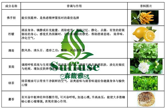 引进产自香水之都--格拉斯的法国 Niel的高品质精油,我们全部选用最优质的天然植物为萃取原料,通过科学蒸馏技术制造出高纯度、高质量的精油,目前已成功研发出近3000种纯天然植物精油,能完全满足各种空间环境、各类客户的不同需求,给您带来前所未有的感官享受,我们将把握时代脉搏,与时俱进,不断完善,创造出更多无数经典香型。