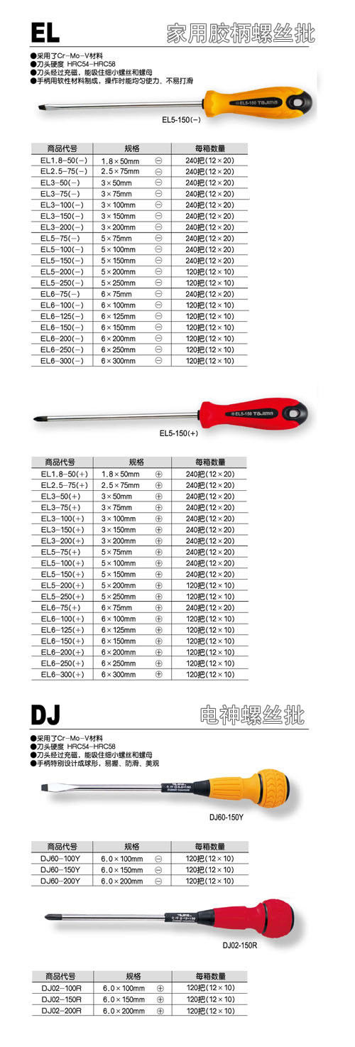 上海田岛工具正厂出品,工业级螺丝批产品全系,根据需要选择入口进入,如有大批量需求,请联系客服! 您可以根据实际需要,想要哪个型号,就拍哪个型号。选择多个型号的,请先逐个加入购物车,然后一并下单。 本产品常备库存,数量在500-800支左右,亲需要的话请直接拍就可以。 - *采用了特殊合金钢Cr-Mo-V材料