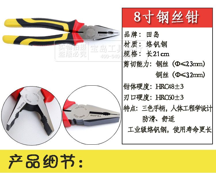 tajima田岛钢丝钳工业级正品6寸7寸8寸 正品行货