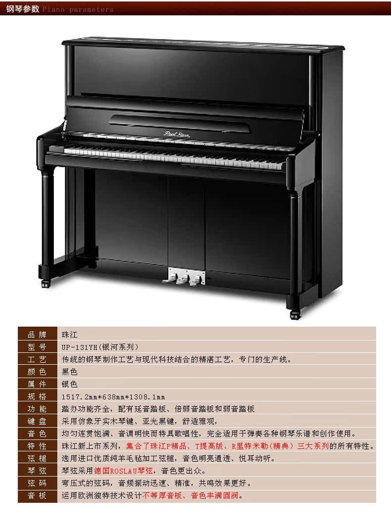 pearlriver乐器珠江钢琴 银河系列UP-131YH 旗舰店品质