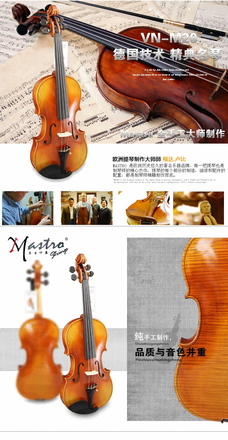 原装进口全手工小提琴 马士特罗MastroVN-M20 高档专业演出专用琴