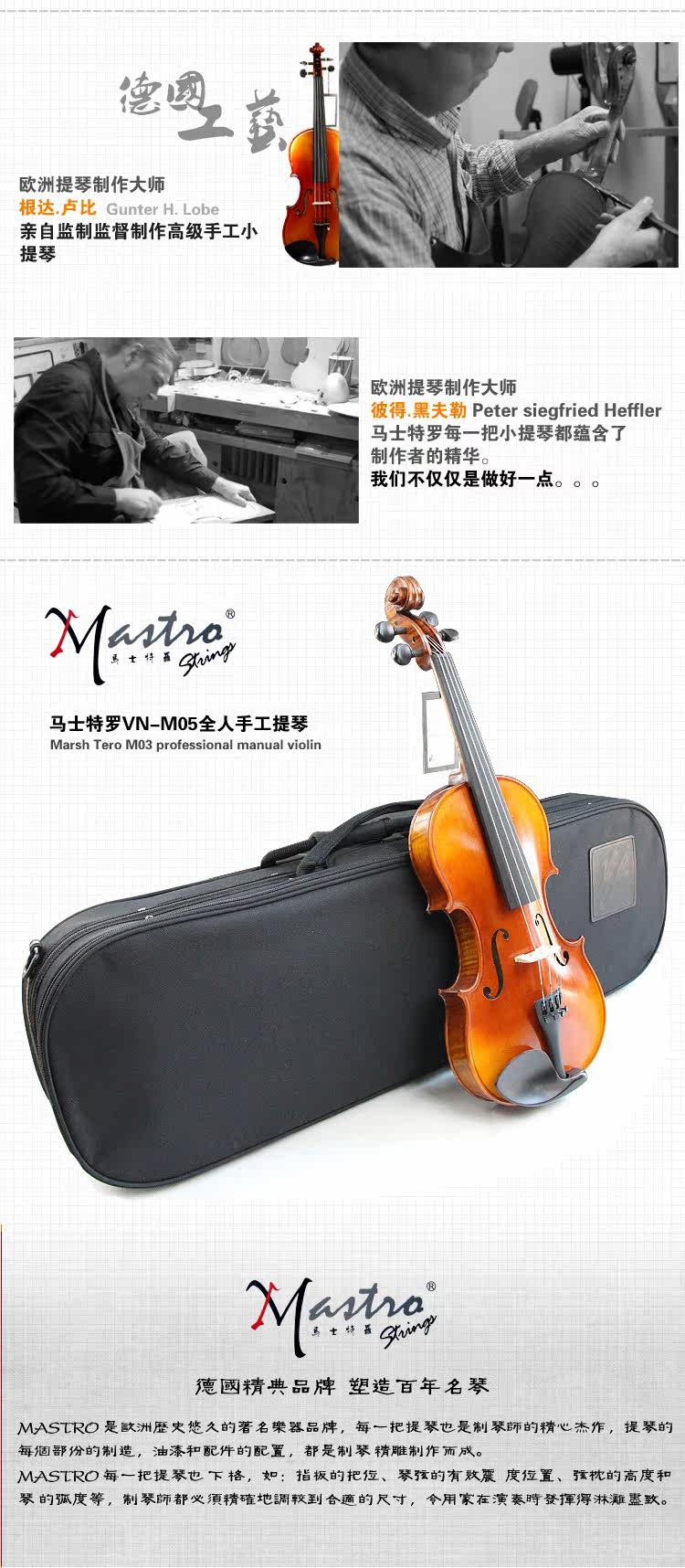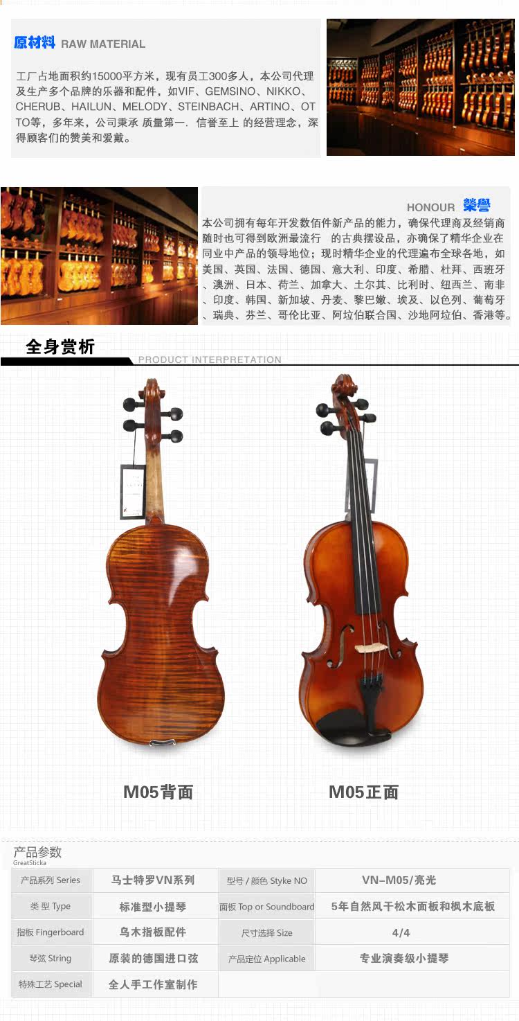 马士特罗VN-M05白松小提琴乐器 德国品牌香港产全手工琴
