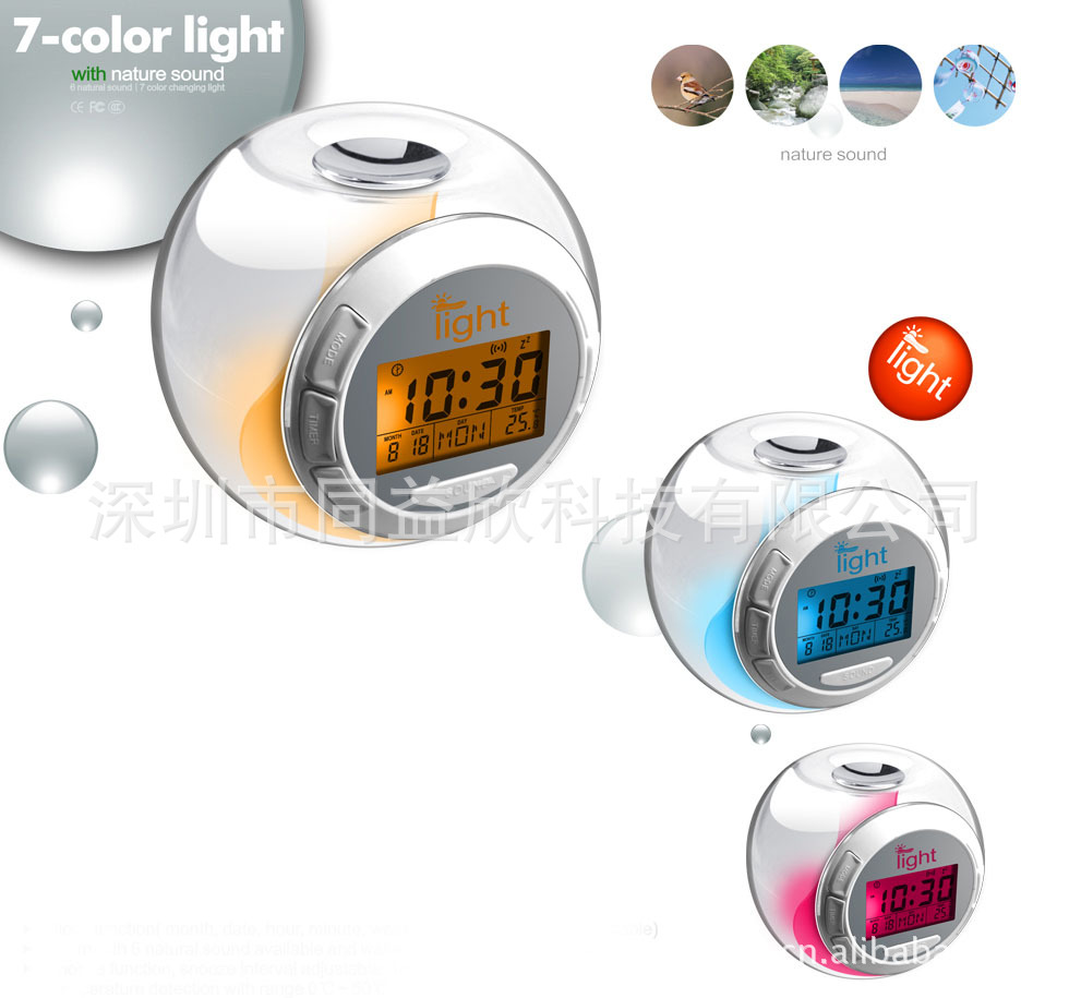 功能功能:自然声音乐,七彩背光灯,万年历,显示说明:LCD屏幕的最佳观察角度为