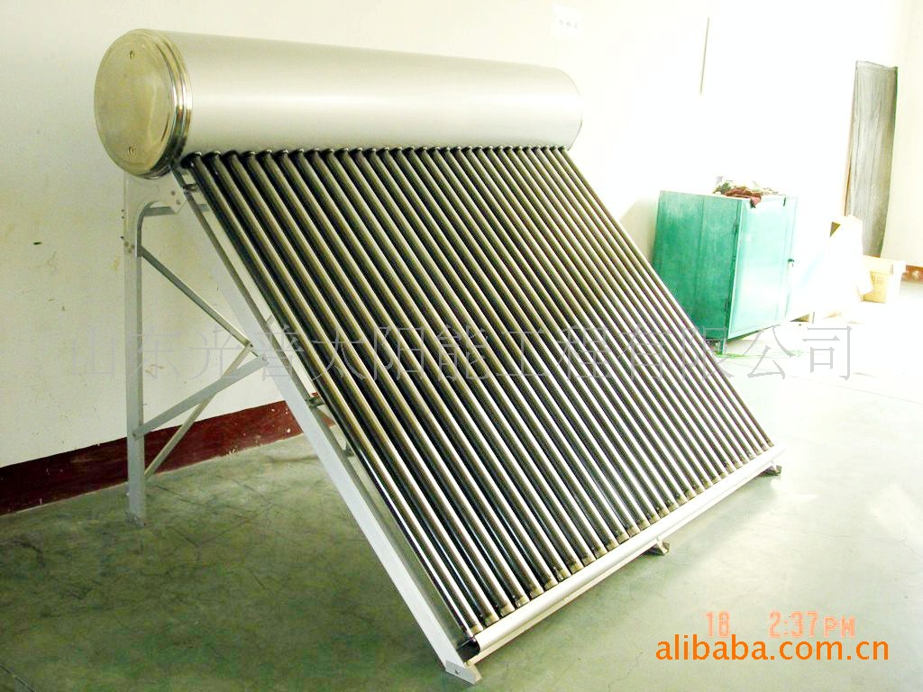 我国目前生产的直插紧凑式全玻璃真空管热水器已有完善的结构形式,成本较低,效率较高。但这种产品也存在着一些缺点,如不能承压,只能作为落水使用,出水压力小;一支玻璃管破损,水箱内全部水就会流光,导致热水器无法使用。特别是集热管内长期注水而沉淀大量的污垢,使其集热效率大大降低,而清理污垢又是一项费工毫时的难事。而热管式真空管太阳热水器则避免了这些缺点。