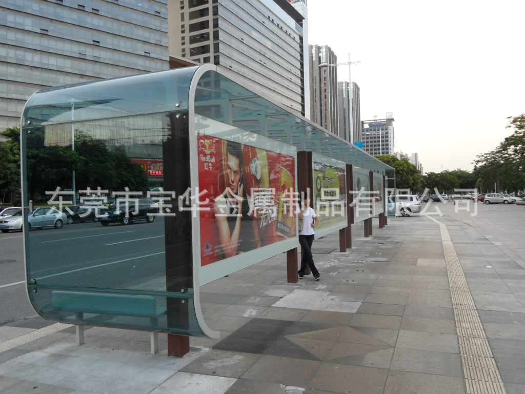 东莞宝华金属制品有限公司是一家专业从事公交设施制作的生产型厂家。我们主要生产的产品有:报刊亭、公交候车亭、宣传栏、别墅岗亭、停车棚、自行车棚、自行车服务亭、保安岗亭、收费亭、治安岗亭、公用电话亭、银行自动柜员机罩等各类金属制品.