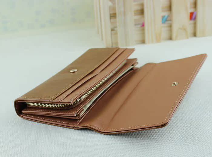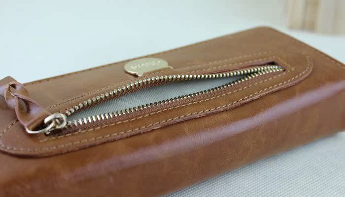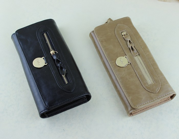 品名:欧美风女士高档油皮三折长款钱包