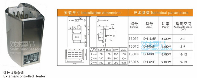 泳乐桑拿炉 金涛 干蒸房房体 干蒸炉 不锈钢F系列外控 汗蒸炉