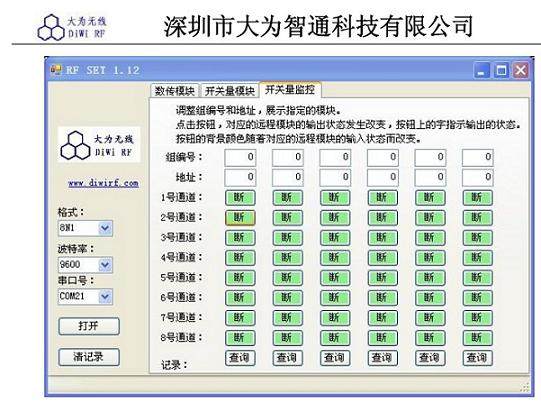 通过该监测界面,可以查询远程开关量控制器的输入输出状态,也可以远程控制开关量