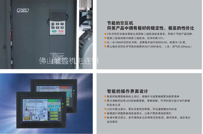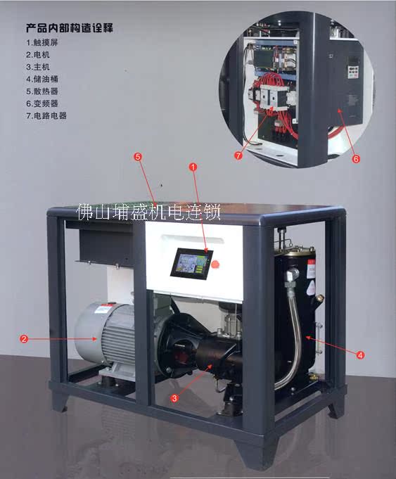 第一,该产品是自带工频,变频且自动转换功能,变频控制实现节能省电且对空压机电器零件在使用过程中有保护功能延长电器零件使用寿命,工频、变频自动切实现智能化人性化控制。