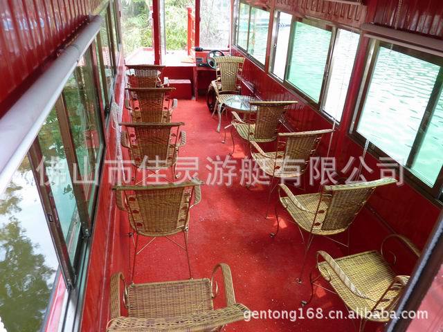 吃水:0.3m 功率:2.5kw电机或40hp挂机 航速:12kw-40kw/h 乘员:20人 电池:200ah*8只 820普通画舫引进进口船型,由本公司开发设计制造。其动力采用环保型直流电 机,适用于水库、公园、内湖等水域航行。船体采用优质玻璃纤维制造,具有强度高,重 量轻的优点。甲板室由钢架安装而成,玻璃钢架与船体连接牢固,是无噪音、无污染 的理想游览观光船。双浮连体结构,平稳安全,底舱发泡处理,具有良好抗沉性,灵 活方便的操作系统,完善的安全措施配备,此船型在各大风景区、水库深受客户的欢迎 | |