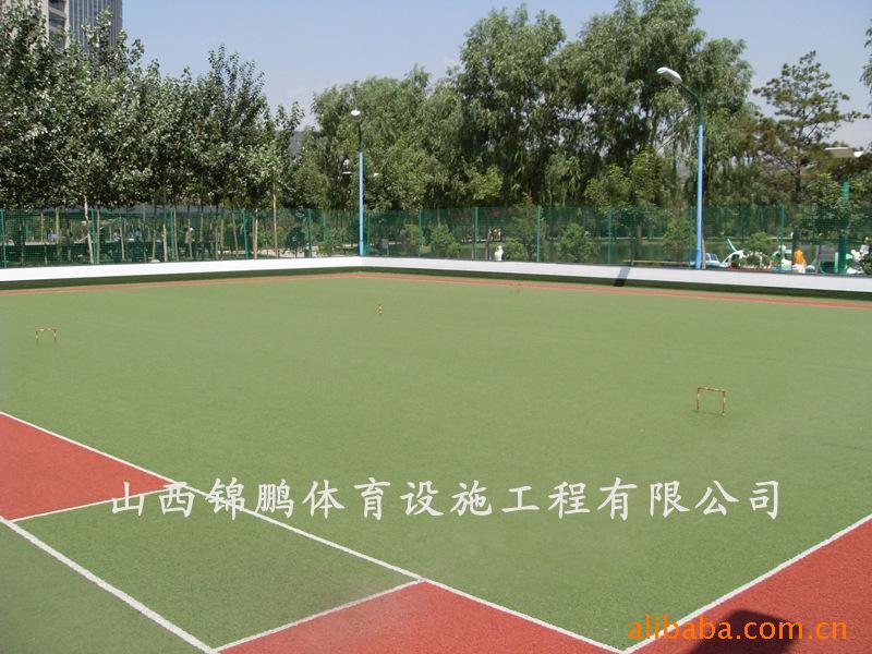 门球运动作为近几年新兴的一种体育运动,具有场地小、规则易懂、安全、战术多变、趣味性强等特点,并且这项运动可起到防病、保健等作用。因此我公司结合门球运动的特点,采PP卷曲草,为广大门球运动爱好者提供高标准的人造草坪门球场地。