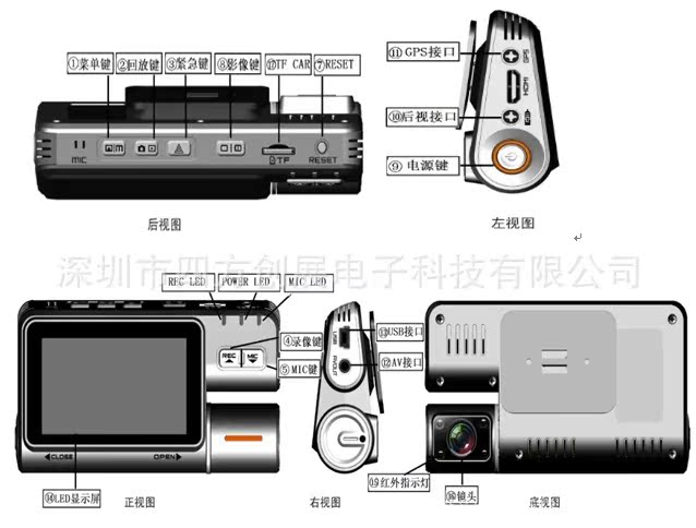 产品特点 | 前置720P录影,后置VGA录影,GPS经纬度记录,重力加速感应 |