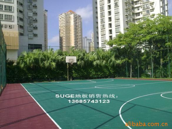 室外悬浮式拼装运动地板篮球场特点:环保、美观、效果好、成本低、使用寿命长、零维护,具有自排水和散热功能。