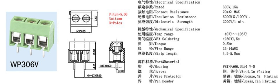 正溪弹片式接线端子WP306V