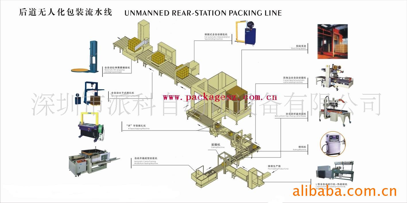 本流水线可根据您的要求,量身订做一条合适您需求的全自动包装生产线,从自动开箱→自动装箱→自动称重→喷码→自动I字型封箱→自动四角边封箱→自动井字型捆扎→码垛系统→自动栈板打包→自动水平捆扎→自动在线缠绕→完成。
