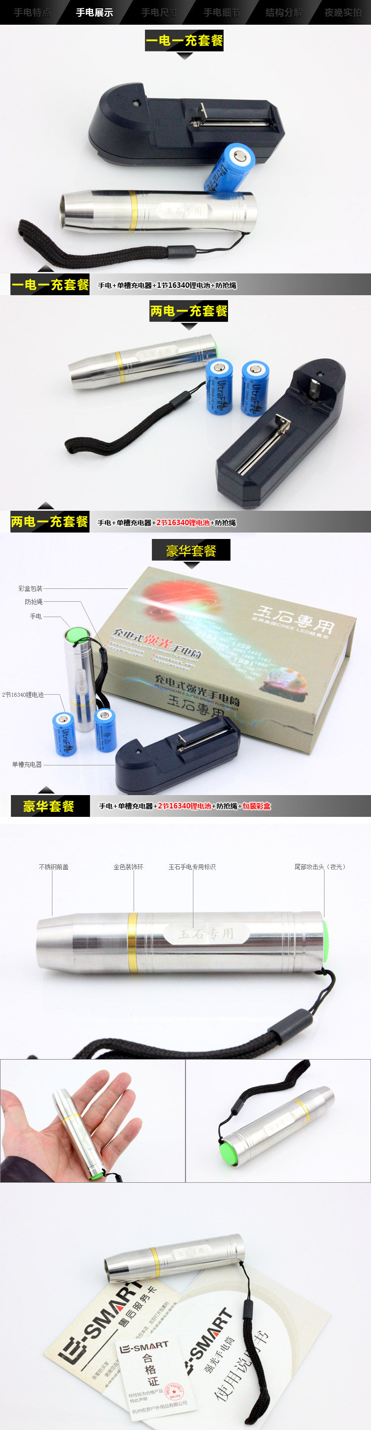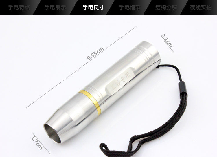 正品强火不锈钢Q5 1档黄白光迷你强光照玉器鉴玉石手电充电16340