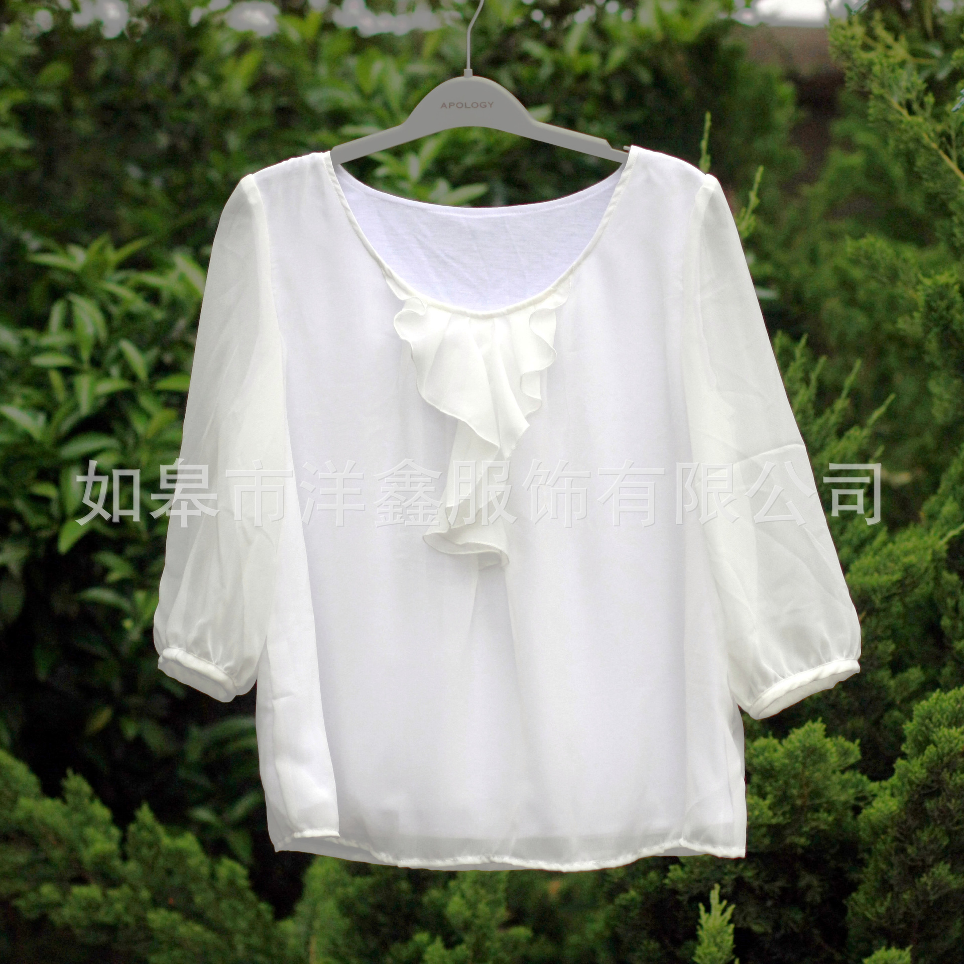 厂家供应 外贸特价荷叶边雪纺女式衬衫