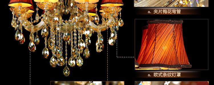 皇者香槟色进口水晶灯组装图 客厅欧式灯水晶吊灯Z030-6