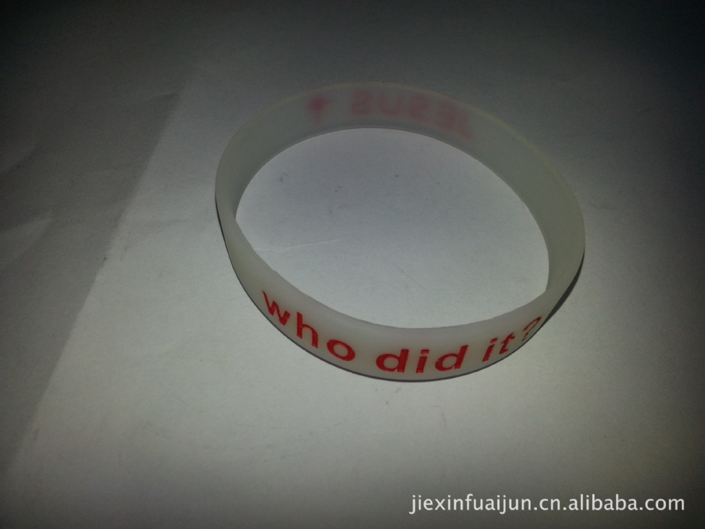 形式多样:可根据客户要求定制大小,设计字体及图案;如:凸字,凹字,丝印,填色(入色),滴胶,激光,序列号(每个手环的编号都不同,带金属,带扣等等。色彩多样:潘通卡上的任意颜色,艺术纯色,分段色,螺旋色,层色,迷彩...夜光,光变,温变,发光,闪光,另可加各种香味(如玫瑰香等各种花香,香蕉/苹果等水果香等),加驱蚊材料......种类繁多:自戴,送人皆可,经济实惠美观。硅胶手腕热卖中,因材料质地柔软再加上外观大方简洁,颜色款式多样,自我个性,深受市场欢迎,在21世纪刮起了一阵不小的流行风潮,亦被大家称为幸运手环。