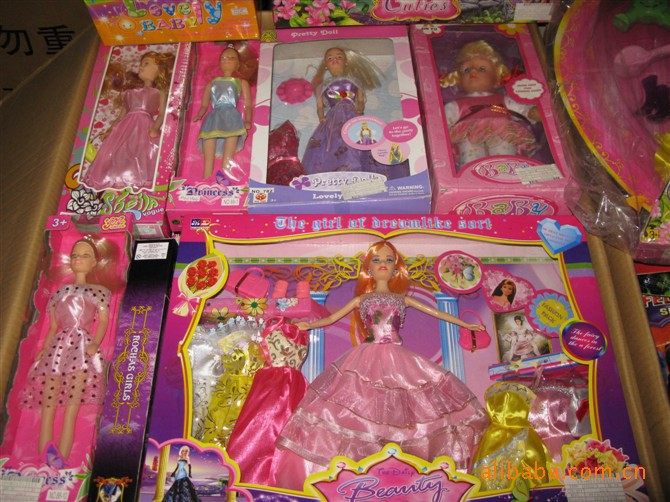 芭比类论斤批发,一箱起发货,款式大小,包装形式均为混装/大大小小随机发货,很不错的货品,一箱35到40斤,部分箱里面会配有少量电动娃娃和音乐娃娃。