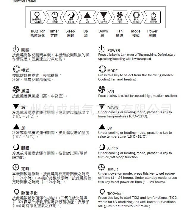 . 兼备冷气、暖风、凉风及睡眠模式