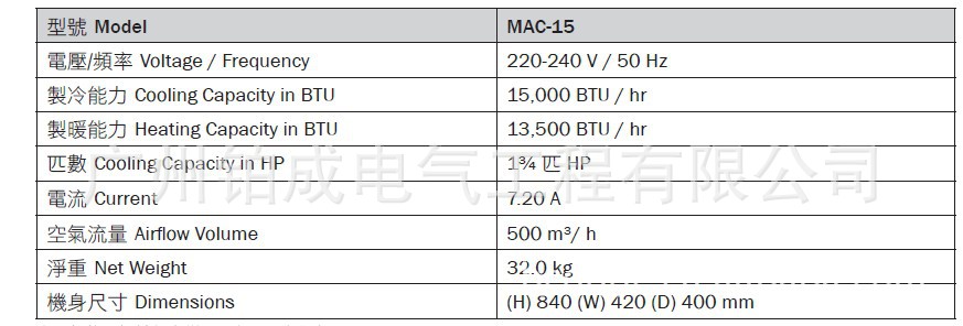 . 制冷能力达1¾ HP / 15,000 BTU/hr