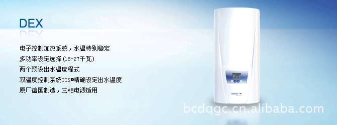 德国宝代理、以最先进技术设计的全新「佳捷」即热式电热水器,原厂德国製造,款式齐备,可供应一个或多个出水位,配合现代家居需要。特别省电设计,只将需用冷水加热,避免热量流失,既省电又环保。