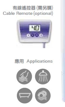 . 控制面板附有大屏幕液晶显示器,可在摄氏20至60度之间準确设定出水温度