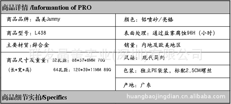 联发晶美实业(深圳)有限公司始创于1993年,拥有26000平方米的“晶美五金”生产基地,是集设计、开发、生产和销售于一体的自营进出口的现代化五金卫浴企业,主导产品:五金拉手、门锁、工程小五金及整体卫浴等系列。产品远销欧洲、美国、俄罗斯、东南亚、日本、南非等国家!拥有自主品牌“Jammy”,在国内各省市设立14个办事处,600多家经销商,凭借“优质的产品、合理的定位、近距离服务”的经营理念,在家居五金行业拥有一定的市场份额,并与红苹果家具、红星美凯龙、海尔整体橱房、百安居等多家明星企业合作。