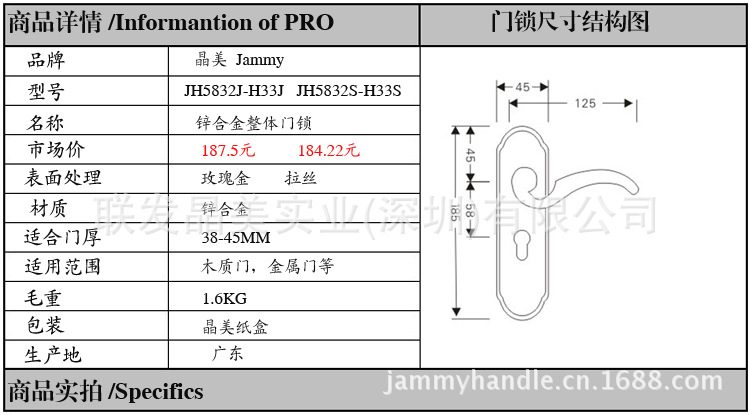 联发晶美实业(深圳)有限公司始创于1993年,拥有26000平方米的“晶美五金”生产基地,是集设计、开发、生产和销售于一体的自营进出口的现代化五金卫浴企业,主导产品:五金拉手、门锁、工程小五金及整体卫浴等系列。产品远销欧洲、美国、俄罗斯、东南亚、日本、南非等国家!拥有自主品牌“Jammy”,在国内各省市设立14个办事处,600多家经销商,凭借“优质的产品、合理的定位、近距离服务”的经营理念,在家居五金行业拥有一定的市场份额,并与红苹果家具、红星美凯龙、海尔整体橱房、百安居等多家明星企业合作。
