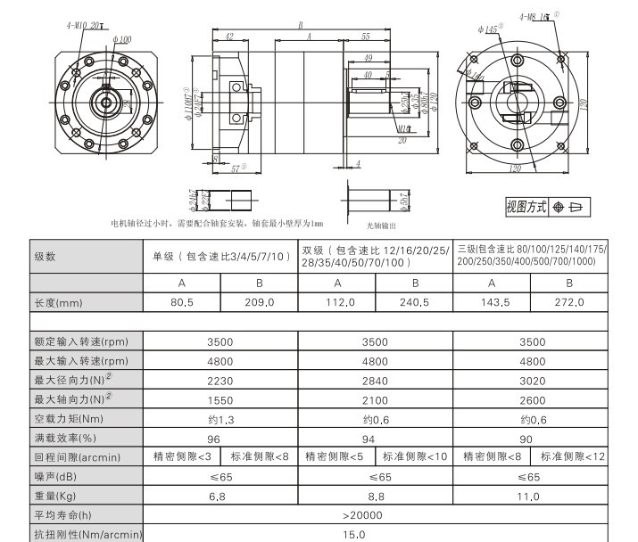 该行星减速机具备台湾高精密机械加工工艺性能,具有低噪音、结构紧凑、外观精美的优良特性,是伺服马达、步进马达的首选配套产品。