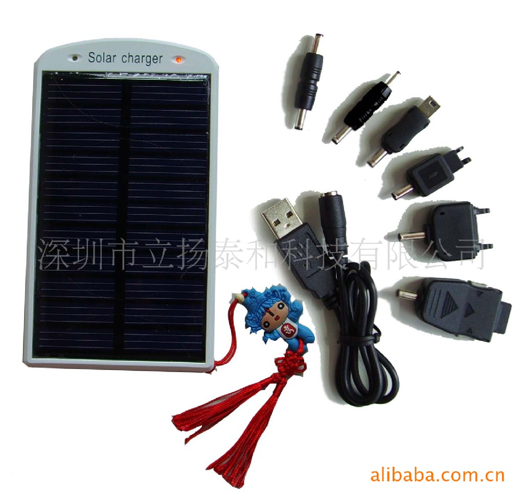 太阳能充电器是通过光能转换成电能的光电转换设备,其原理是:通过光电转换将光能转换成电能并储存在内置的锂电池里,然后再通过控制电路将内置锂电池的电量通过输出口给手机、数码相机、MP3、MP4、PSP等数码产品充电,该太阳能充电器在长期无阳光的情况下,也可以通过市电或电脑USB给内置锂电池充电,适用于出差、旅游、长途乘车船、野外作业等环境的备用电源。