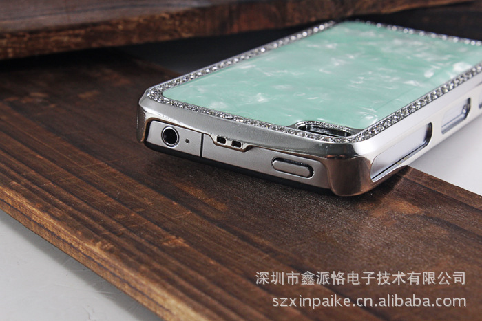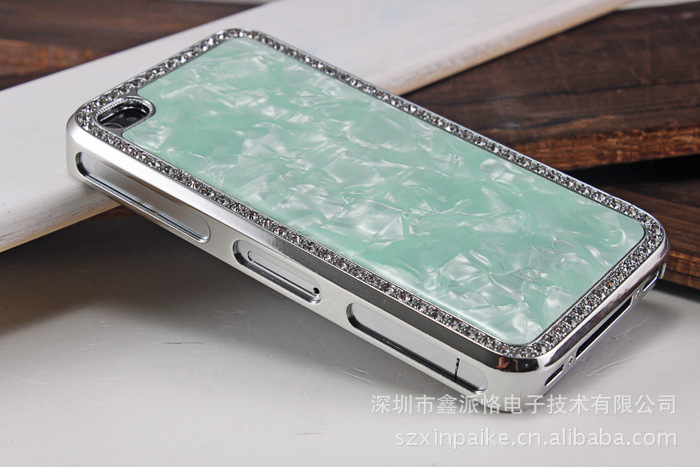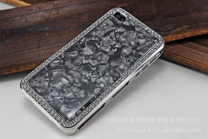 Introduction(產品介紹) 本產品是一款適用於iPhone4/iPhone4S手機的保護外殼,採用高級ABS材料製作,經由特殊電鍍塗層處理,精美大理石紋路配合水鑽鑲嵌,使其整體更具質感。-本產品具有掛件孔,可配飾各種手機掛件,使手機更加炫麗、時尚。-外殼內部的內貼記憶棉層設計,能更有效的將機身穩固在保護殼內,且同時保護手機背部鏡面。-提供各接口預留(充電/同步端口、耳機孔、音量按鍵等),不會影響用戶的使用。User Manual(使用說明)1. 使用時只需將iPhone 4或iPhone4S手機按正確方向裝入後蓋內即可。2. 如需清潔,請用濕布輕輕擦拭。3. 請不要使用化學溶劑擦拭本產品。4. 請不要將強酸性藥劑潑灑,塗抹至產品上。5. 請不要將產品置於高溫地方或是將產品投入火中。6. 請不要用力擠壓或摔砸本產品。