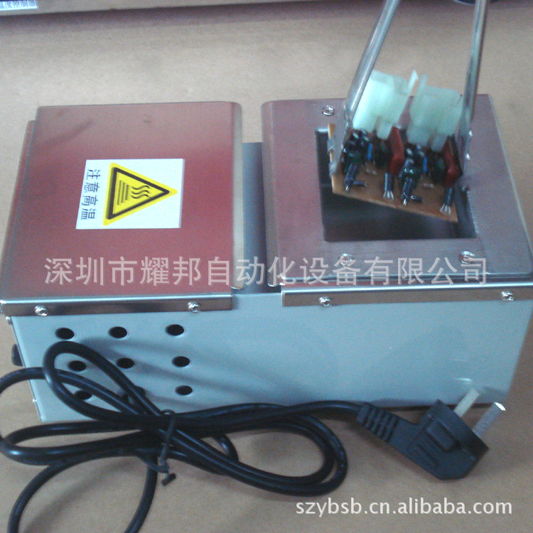 本公司所有产品均采用内热式发热方式,充分发挥发热体作用。确保发热体能在无空气氧化中工作,延长发热器寿命。使用热敏金属传感器,控温精度高,即时反应炉内温度,请放心使用。产品使用说明: 1、首次使用时先将适量锡条放在锡锅内,接上电源,打开电源开关,调整温度调至250℃左右,用焊锡条在已发热的锡炉槽底部上涂锡,至锡面盖住锡槽。当锡条开始熔化时,应及时加进锡条直到熔锡面至合适的高度,如熔锡炉内没有焊锡时切勿使用熔锡炉通电加热。 2、设定温度不宜过高,以免锡面氧化加速,一般设定在300℃左右为适合或根据使用需要设定。 注意事项: (1)本熔锡炉接有地线,请用户务必接用,并保证接地良好,以策安全。 (2)熔锡炉使用前应检查电源电压是否相符。 (3)熔锡炉应保持干燥,不宜在潮湿或淋雨环境下工作。 (4)熔锡炉应安放平稳,周围0.5m范围内不能放置易燃物品及其它物品。 (5)熔锡炉使用时操作者应使用护目镜和防热手套,使用中注意避免异物掉进熔锡锅内,防止发生意外。 (6)熔锡炉通电后严禁移动,不能任意敲击,拆卸及安装其电热部分零件。 (7)使用时熔锡炉外壳有50℃—80℃的温度,这是正常现象,注意高温,切勿触摸外壳。 (8)使用完毕,应关闭电源,在无人看管情况下,不要将熔锡炉通电加温。 (9)为了对用户负责,本产品未经使用而损坏,只须保持原状,均由我厂退换或修理。 (10)本熔锡炉如出现故障,应聘请有专业维修技能的人员进行检查。 (11)本熔锡炉用的发热板,我公司长期备有现货,如有需要可随时与我公司联系购买。 (12)本公司所生产的锡炉系列,整机保修一年。(人为因素损坏除外) |