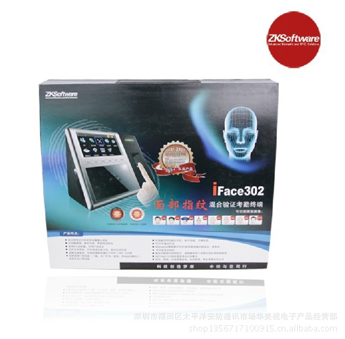 iFace302 multi-biometric identification time attendance and access control terminal adopts ZKSoftware’s latest ZEM600 platform with ZK Face 7.0 algorithm and large capacity memory. iFace series integrated 630MHz high speed ZK Multi-Bio processor and high definition infrared camera enables user identification in the dark environment. Face and fingerprint multi-biometric identification method will be applicable more widely. All operations of iFace are designed to be performed on the 4.3 inches TFT touch screen. Multi-model communications includes RS232/485, TCP/IP, optional WiFi or GPRS. Optional built-in 2000 mAh battery eliminates the trouble of power-failure.