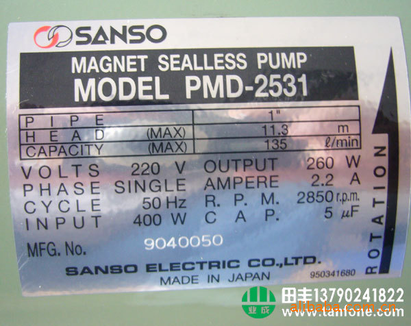 http://www.dgyecheng.com 东莞业成机电设备有限公司 (日本三相SANSO水泵中国总代理)