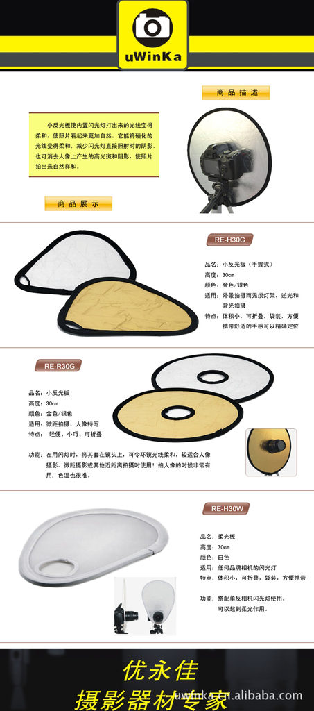 关键词:柔光板 柔光片 小反光板 金色/银色反光板
