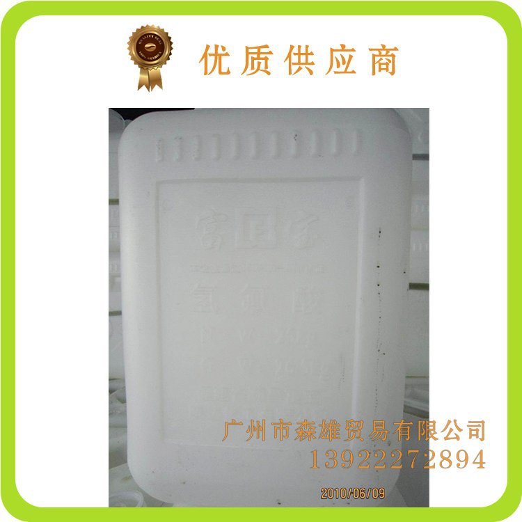 四、用途:主要用于制无机氟化物,以及治金分析,硅化合物分析。也用于玻璃蚀刻,电镀,试剂,发酵,陶瓷处理,磨沙灯泡的制造,金属铸件除砂,石墨硅份的去除,金属的净洗(酸洗铜、黄铜、不锈钢等)和半导体(锗、硅)的制造等。
