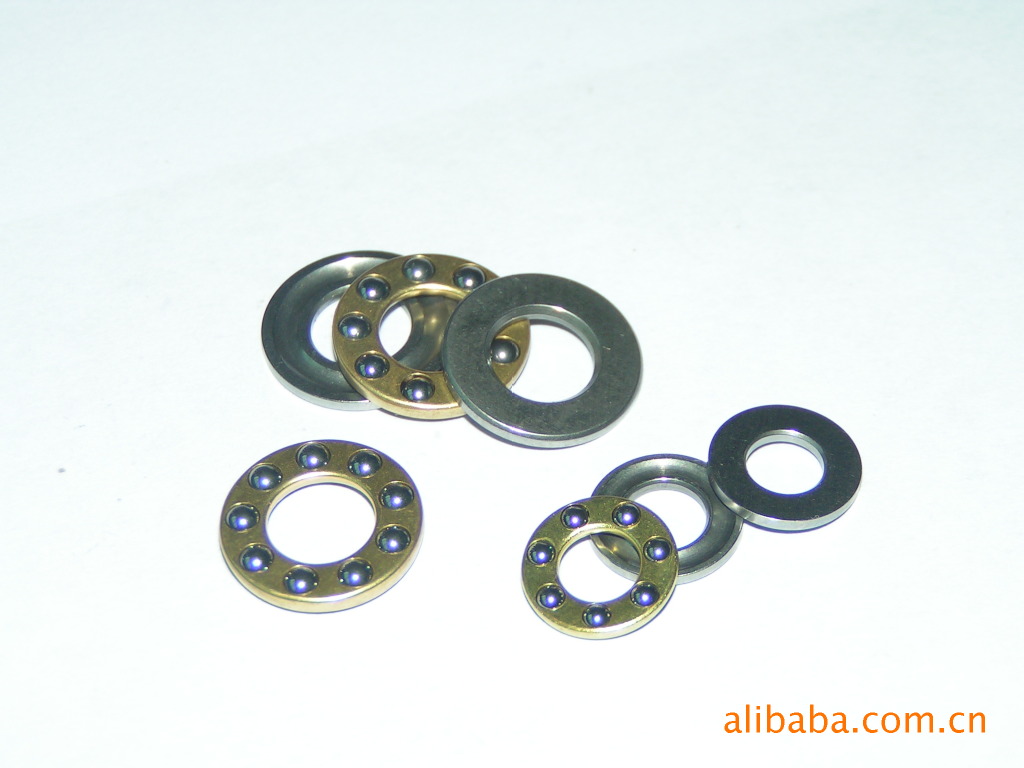推力轴承一般是由两个止推垫片或更多止推垫片和若干滚动体组成,一般止推垫片分为轴片和座片,滚动体一般最常见型式是由铁质或铜质保持架组合成整体。该类型轴承最常见是钢球式推力轴承。