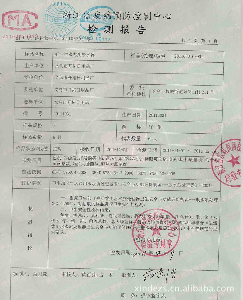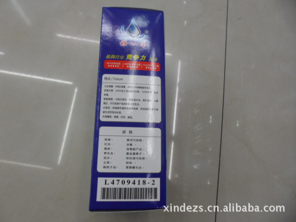 世界水专家美F--巴特曼说“水是最好的药”。人体内含75%的是水,人体需要不含有害物质的是弱碱性、微量元素适中、小分子活化水,然而环境污染带给我们的是污染、重金属、化工药物等残留物。导致了70%亚健康群体。 具体表现为: (1)心血管症状:经常感到心慌、气短、胸闷、憋气等; (2)消化系统症状:不思饮食、食欲减退、消化不良、胃酸、腹涨; (3)骨关节症状:经常感到腰酸背痛、关节不适、肩酸、手脚发麻; (4)神经系统症状:经常头痛、头晕,头昏脑胀,记忆力差,全身无力、困乏,易疲劳; (5)精神心理症状:莫名其妙地出现心烦意乱,遇事易生气,易紧张和恐惧; (6)睡眠症状:入睡比较困难,容易凌晨早醒,夜间常做噩梦; (7)泌尿生殖系统症状:性功能低下或者性要求突然减少,尿频,尿急。 好一生龙头净水器采用多芯多级净化,随时为您提供口感良好的安全、无菌、健康的饮用水,并且保留水中有益的矿物质和微量元素。 好一生净水器滤芯以100%硅藻瓷为原料,经1000℃以上高温烧结而成。内置陶瓷滤芯能将水中的各种致病菌、悬浮污染物滤除,清洗过程中,不会被损坏,有效保证滤芯在整个使用过程中的性能稳定。 膜内置陶瓷滤芯内装填的活性炭、托玛琳,能有效去除水中的有机污染物、异味,使水分子团变小、活化 能有效去除水中的余氯、有害重金属离子(铅、镉、铬、砷、汞等)和消毒副产物等有机微污染物,使用过程全程抑菌,后置优质活性炭能进一步去除异味、改善口感,确保您及时获得健康、安全的饮用水。 大肠杆菌、金黄色葡萄球菌、伤寒沙门氏菌、霍乱菌、铜绿假单胞菌(绿脓杆菌)去除率为99.9999%。 好一生龙头净水器直接安装于水龙头上,安装简便。其切换器可让您轻松选择直饮水或自来水。使用过程有效抑菌,滤芯可反复清洗,并容易更换。 产品特点: 独有100纳米陶瓷膜过滤,完全除菌 出水直接饮用 保留有益的矿物质和微量元素 产品技术: 流量:约每分钟2升(0.2MPa) 滤芯寿命: 10,000升(视各地水质不同有所差异) 使用压力:0.1-0.4MPa 使用温度:5-45℃ 尺寸: 14.5*10 材料:陶瓷、活性炭、托玛琳、ABS |