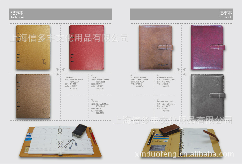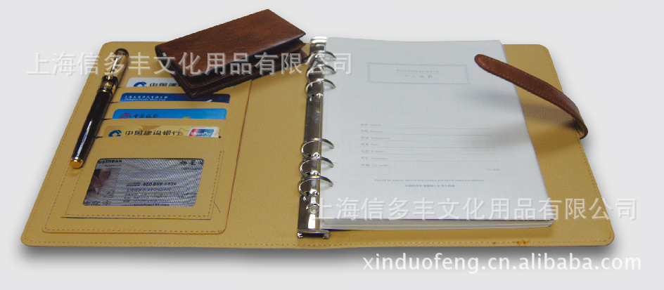 上海信多丰是一家专业研发设计记事本和皮具类产品的生产企业,我们工厂设在上海,公司主要经营项目为:上海记事簿笔记簿订做,上海裱装记事本、上海油边记事本、上海工作记事本、上海会议记事本·上海庆典记事本、上海工商记事本、上海工作记事本、上海周历记事本、上海日历记事本、上海彩色记事本、上海U V记事本、上海丝绸记事本、上海铝制记事本、上海活页油边记事本、上海金属扣活页记事本、上海拉链活页记事本、上海活页记事本、上海万用手册、上海效率手册、上海真皮活页记事本、上海特规活页记事本、高档经理夹、高档文件夹、高档便签夹、高档通讯录、高档笔记本、真皮记事本、真皮笔记本.,真皮名片夹, 皮具:真皮钱包,真皮护照包,真皮钥匙包,真皮名片包,真皮名片册,真皮经理夹,相框/相册,腰 带,皮具礼品、皮具套装,箱包,公文包、公事包、旅行包、手提包、真皮电脑包,酒店皮具,办公皮件等小皮尚品为您设计订做各种本册类产品;记事本选料考究,做工精细,产品的材质包括:各种真皮(牛皮、羊皮、马皮、猪皮、鳄鱼皮、鹿皮、驼鸟皮等)、各种仿皮(进口PU革,国产PU革,人造革,PVC等)、各种布料(进口专用装帧布、尼龙布、牛津布、帆布、丝绸等)、各种特种纸、涂塑纸等。提供各种个性化的订制服务,记事本附加LOGO:烫金、银、多色电化铝、丝印、皮革彩印、四色胶印、刺绣、激光雕刻、金属铭牌等,各种形式,并可按您的要求进行特殊设计,我们积极采用各种不同的材质,不同的工艺,不同的设计风格,在产品款式及工艺上不断推陈出新,以满足高品味企业形象、礼品、赠品的需求。精工细作,品质保证。