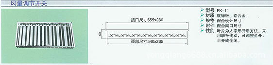 公司主要生产:铝合金风口、ABS风口、防火阀、风量调节阀、消声静压箱、消声弯头、自垂百叶式风口、螺旋风管、共板法兰、白铁通风管道制作安装.